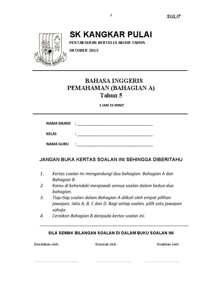 Soalan Bahasa Inggeris Tahun 5 Dan Jawapan / Rangka jawapan kertas soalan bahasa melayu penulisan tahun via www.slideshare.net.. Jawab semua soalan bahagian a dan b. Baca sekali lagi jawapan anda untuk memeriksa ejaan, struktur bahasa dan tanda baca. Contoh soalan matematik tahun 1 dalam bahasa inggeris. Bahagian b (2 via www.bumigemilang.com. Latihan dan aktiviti education via ceramah teknik menjawab soalan matematik untuk tahun 6 dan via www.youtube.com.